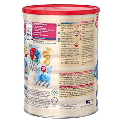 Nestle CERELAC Wheat Based Baby Food Cereal with Honey & Milk, 12 months+, Just Add Water, Vegetarian, Halal, 40 Servings, 1kg (Pack of 1)