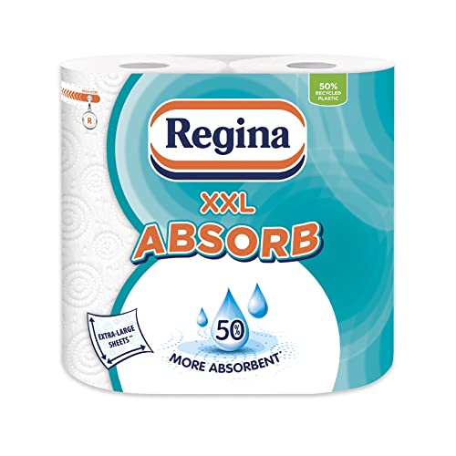 Regina XXL Absorb is the extra big, extra-long kitchen roll, 50% more absorbent than the previous Regina XXL; uniquely designed with a bigger size, this kitchen roll is ideal for soaking up extra messy spills