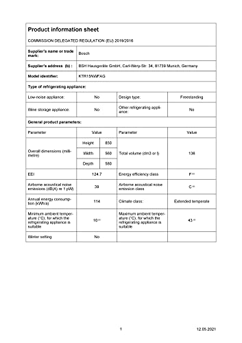 Specification: Bosch KTR15NWFAG Serie 2, Freestanding Larder Fridge, 136L capacity, 56cm wide, White