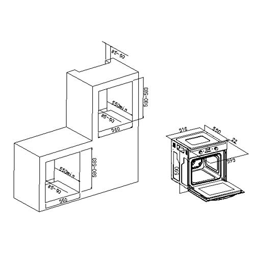 You build this oven into a single oven cavity in your kitchen. This can be either an under-counter cavity or an eye-level cavity. Being 2.4kW means you can fit a plug to this oven without needing to hard-wire if you don’t want to.