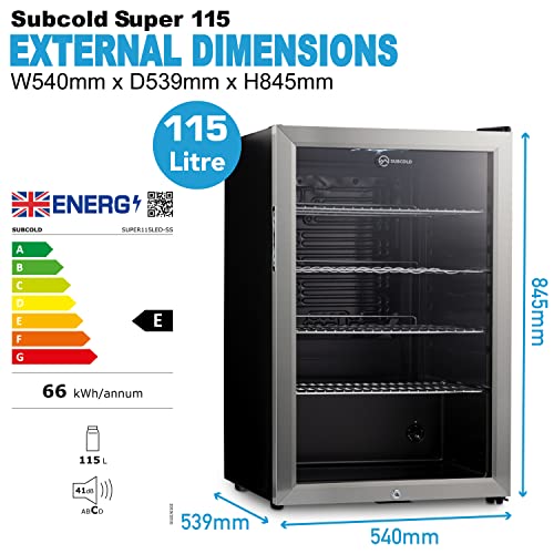 Specification: Subcold Super115 LED – Under-Counter Fridge | 115L Beer, Wine & Drinks Fridge | LED Light + Lock and Key | Energy…