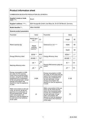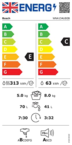 Specification: Bosch WNA134U8GB Serie 4 Freestanding Washer Dryer with AutoDry, Wash & Go 60, IronAssist and SpeedPerfect, 8kg/5kg load…