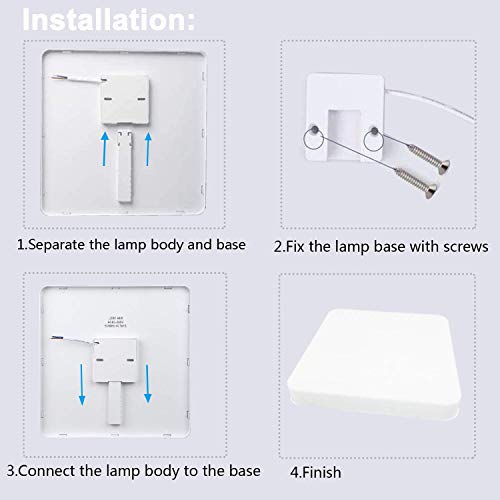 【Ultra thin design】 Square ceiling led ceiling light adopts ultrathin design (thickness: 40mm / 1.57in), installation size (L x W x H): 300 * 300 * 40mm / 11.81×11.81×1.57inch, which it is very good with its interior it is a perfect combination