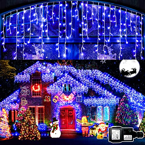 KNONEW Christmas Icicle Lights Outdoor, 400 LED 10m/32ft 8 Modes, Icicle Fairy Lights Plug in with 75 Drops, Waterproof…