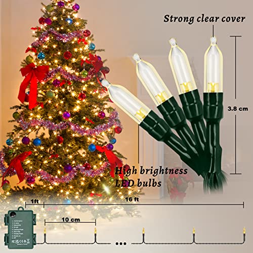 LITOHOM Battery Christmas Lights Outdoor, Warm White 2 Pack 50 LED 16FT Christmas Tree Lights, IP65 Waterproof, 8…