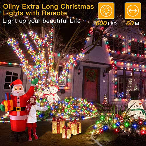 Ollny Christmas Tree Lights Outdoor – 60m 600 LED Christmas Decorations Fairy Lights Plug in Waterproof, String Lights 8…