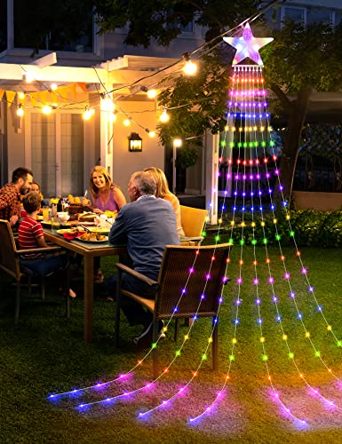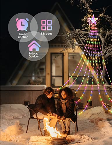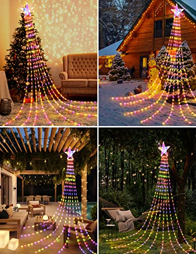 Outdoor Christmas Decorations, 3.5M Star Lights LED Waterfall Christmas Lights 8 Modes Waterproof Christmas Tree Fairy…