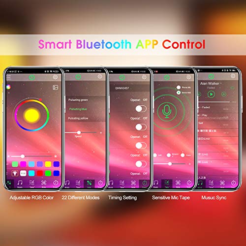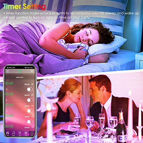 【App Timing and Memory Functions】: After set the time,timer function can make the light turn on/off according to your schedule.The led strip lights has color memory function, once you have connect the light with your app for once,the light will connect your cellphone automatically everytime you open your bluetooth.
