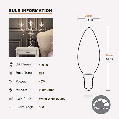 Specification: FanciBuy Screw in Light Bulbs, E14 Candle Bulbs Dimmable, 10 Pack Light Bulbs 40W SES Small Screw, 230V