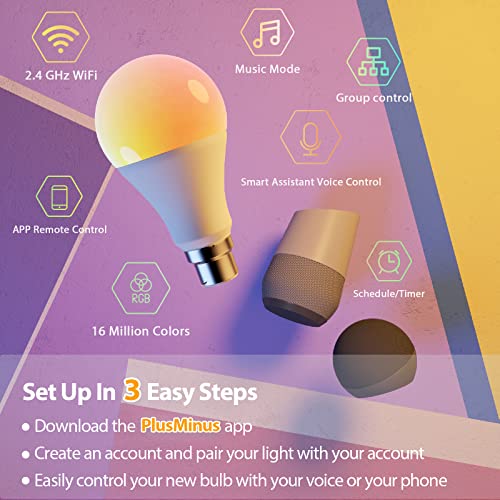 Hand Free: Allow to control bulbs with PlusMinus APP. Smart bulbs that work with Alexa and Google Home, you can use simple voice commands to quickly turn on/off the lights, dim the brightness and change the light bulbs color.