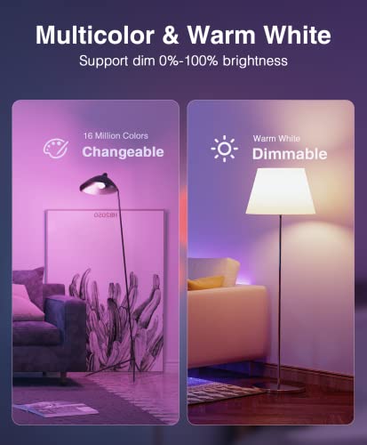 Dimmable&Multicolor: Dimmable RGB + Warm White the brightness of the smart lamp can be adjusted from 1% to 100%. also have 16million colors for you to choose
