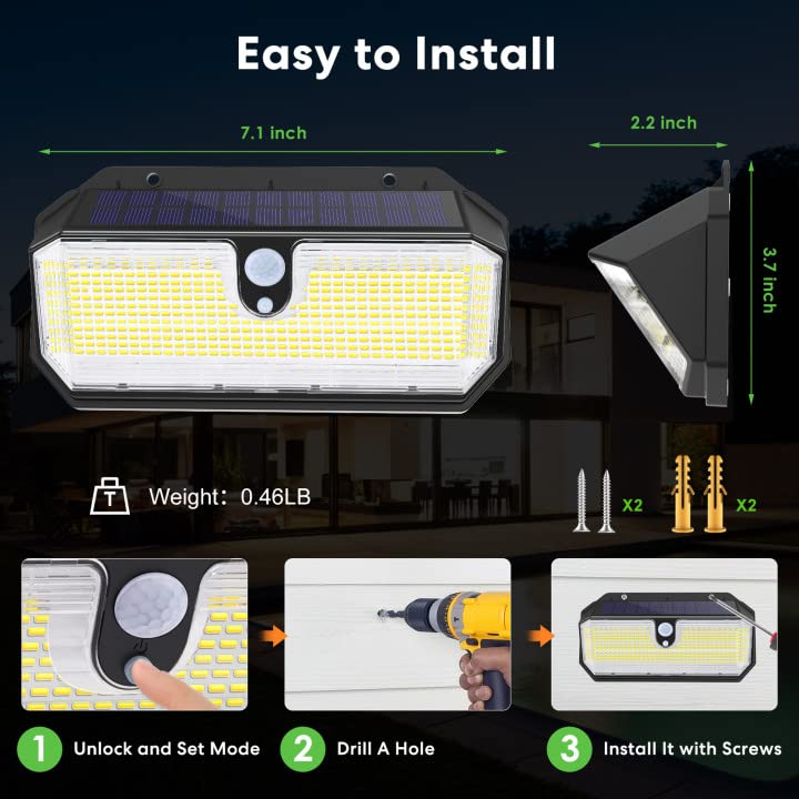 Specification: 282 LED Solar Lights Outdoor, 【2 Pack&2600Lm】Solar Security Lights Outdoor Motion Sensor, 270°Wide-Angle Sensor Light…
