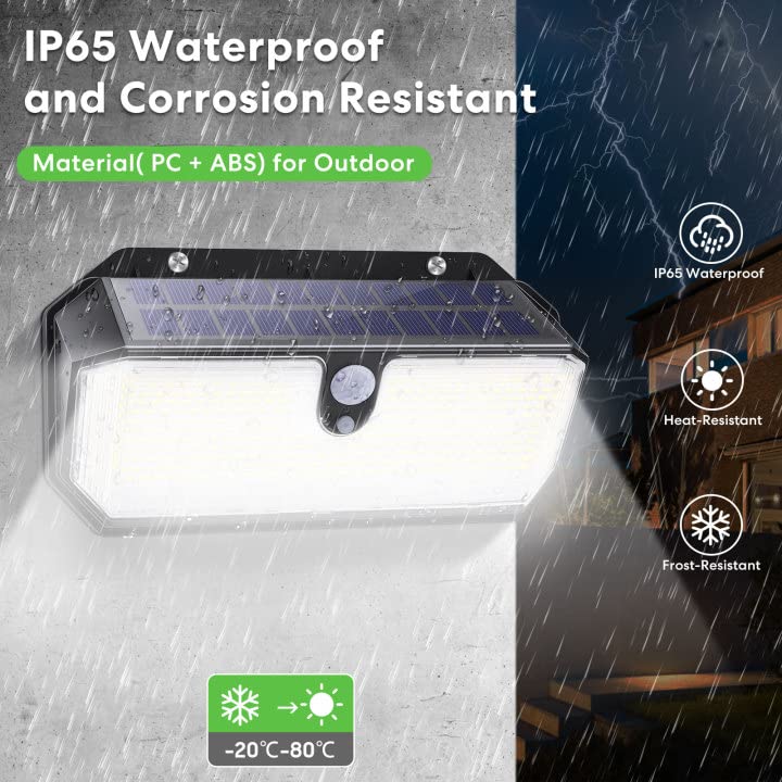 ✔🌞【IP65 Waterproof for Outdoor】Motion sensor lights are made of high quality and durable ABS material, which is waterproof and weather-resistant, and capable of all kinds of harsh weather. Motion sensor lights can work perfectly as usual even in rain, snow days from -20℃-80℃. Great for outdoor, and perfect for garden, patio, fence, gate, and shed.