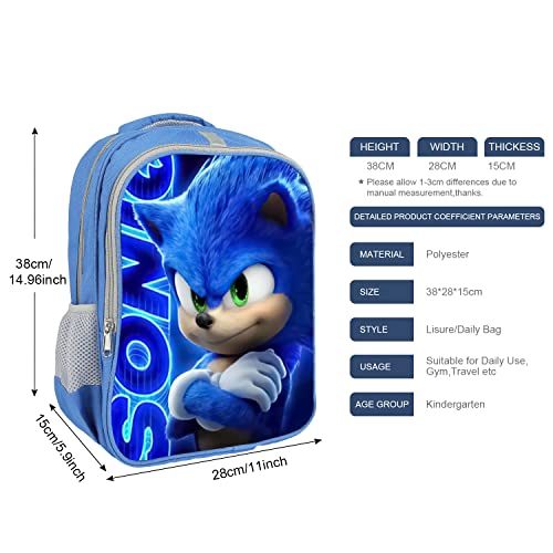 Bonamana Sonic Bookbag Size: 38 height*28 length*15 width cm,the Game school bag for boys and girls has 2 extensive main compartment,back pocket and two wide side pockets.The backpack have large space for children’s goods, like toys, foods, fruits, books, pens, etc.