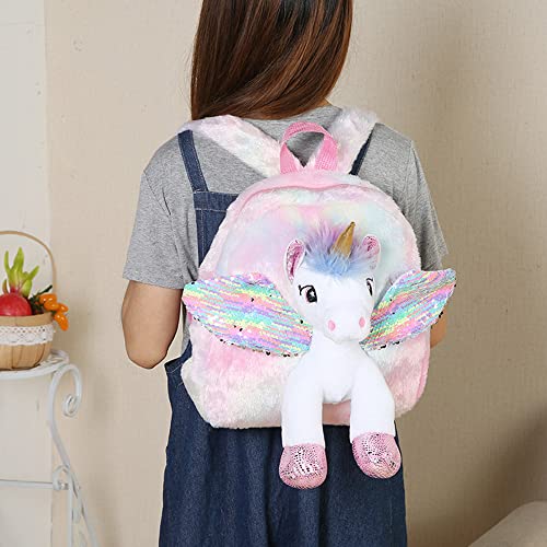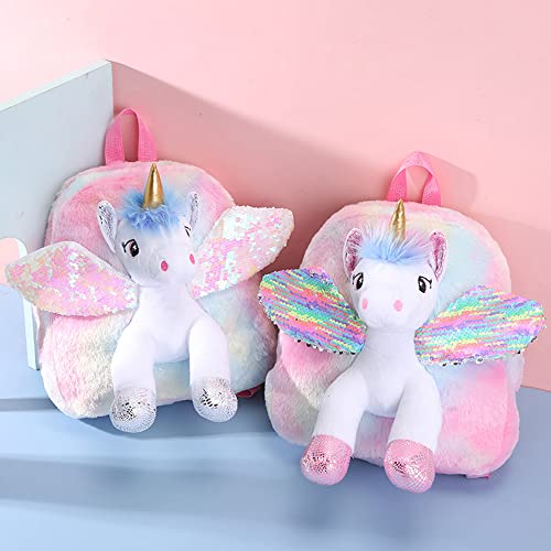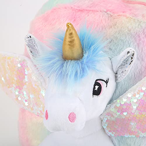 Cute Plush Unicorn Backpack,Unicorn Backpack Furry Bookbag for Kids,Cartoon Unicorn School Bag (Colourful Wing)