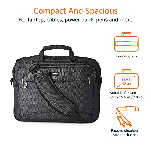 Amazon Basics Compact 15.6-Inch Laptop Shoulder Bag Carrying Case with Padded Shoulder Strap and Zippered Accessory…