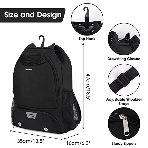 Drawstring Bags PE Backpack with Football Basketball Compartment String Swimming Gym Bag Sports with Shoes Compartment…
