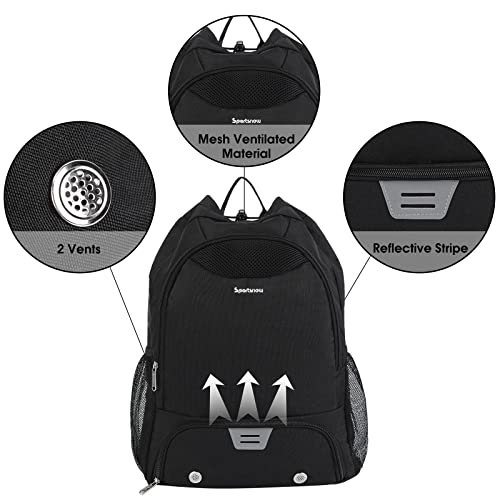 Front Ball Compartment: The front compartment could hold most of basketballs, footballs, sports gloves and helmets, which frees your hands and saves you from the trouble of carrying another bag.