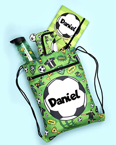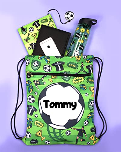 Fringoo Personalised Kids Drawstring Bag with Zipped Pocket PE Bag Swimming Football Gym School Bag for Boys Girls