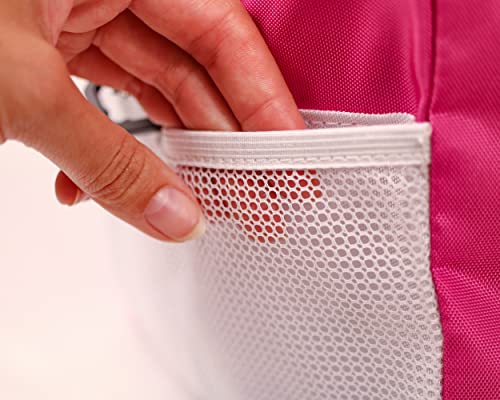 VERSATILE: This child’s gymnastic bag can be folded and unfolded to save space, making it convenient to carry. This gymnastic bag is designed with two mesh pockets on the sides which can hold water bottles, phone charges, and other small luxuries for quick access.