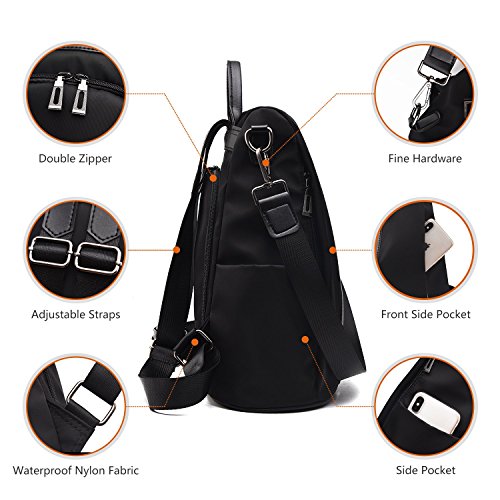 Specification: Charmore Women Backpack Ladies Rucksack Waterproof Nylon School bags Anti-theft Dayback Shoulder Bags, Black2, M