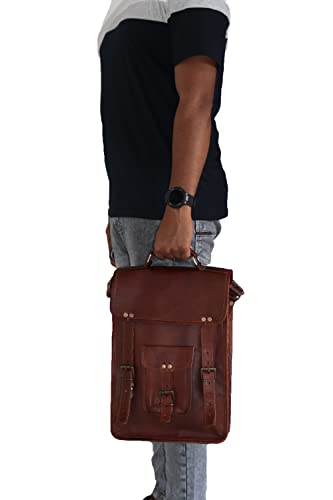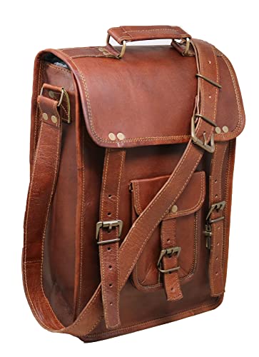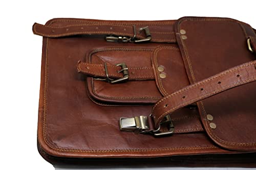 15″ leather messenger bag laptop case office briefcase gift for men computer distressed shoulder bag