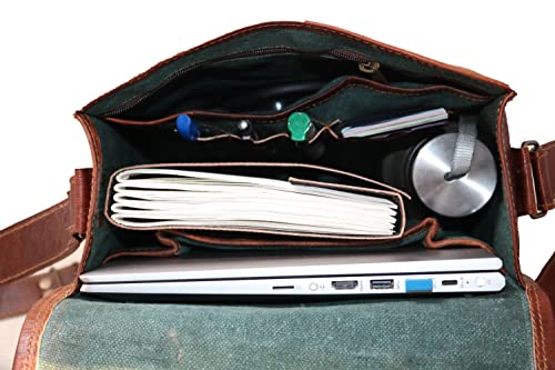 PREMIUM MATERIAL: Superior Top grain Goat leather ,masterfully sewed with durable waxed Thread to ensure long lasting Messenger bag. The inner lining of the bag is sturdy canvas . The bag, when filled, stands on its own!!