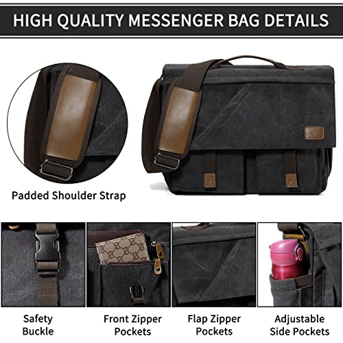 Specification: Kasgo Messenger Bag for Men, Vintage Water-Resistant Canvas Shoulder Briefcase Satchel with Padded Shoulder Strap…