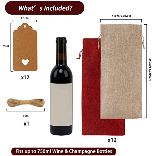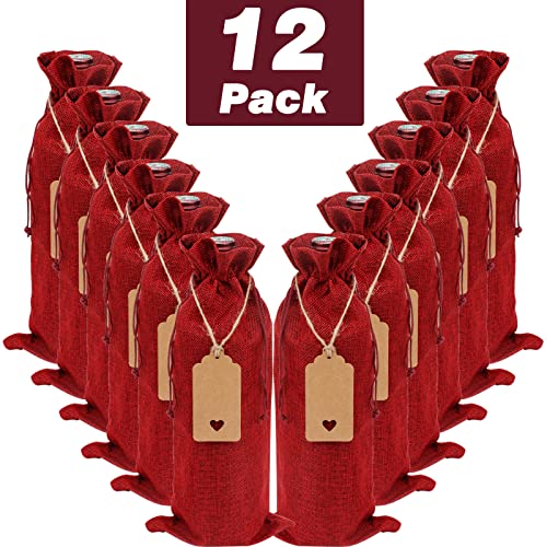 12 Pack Jute Wine Bottle Gift Bags, Multipack Burlap Bottle Bag with Tags 35 x15 cm Drawstring Wine Bottle Bags for…
