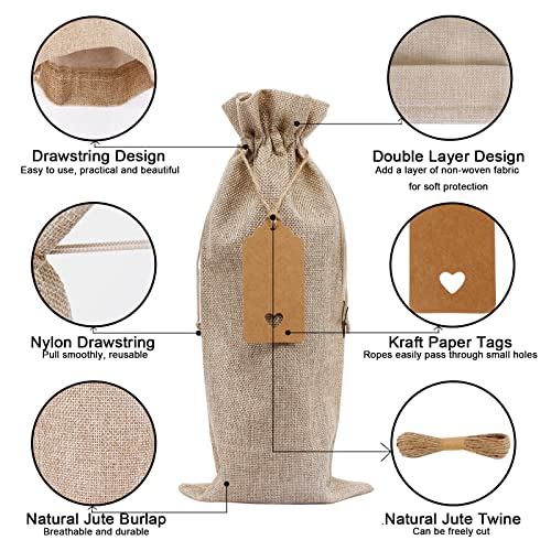Specification: 12 Pack Jute Wine Bottle Gift Bags, Multipack Burlap Bottle Bag with Tags 35 x15 cm Drawstring Wine Bottle Bags for…