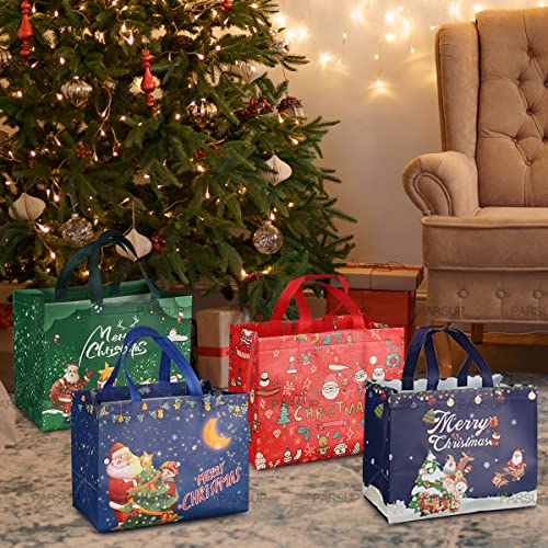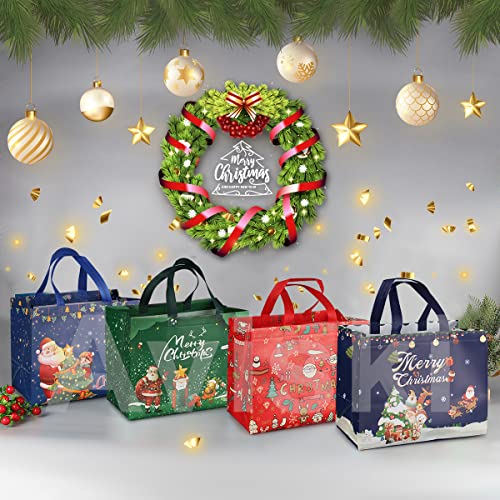 4PCS Christmas Gift Bags,Christmas Tote Bags with Handles, Christmas Treat Bags, Multifunctional Non-Woven Christmas…