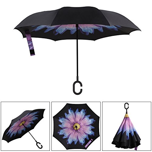 Durable Material : With the breathable double layer water repellent canopy, high-quality electroplated steel shaft, and premium resin-reinforced fiberglass ribs, the sturdy Eono inverted umbralla will give you a strong protection in windy, sunny or rainy.