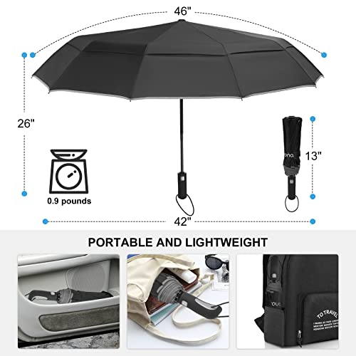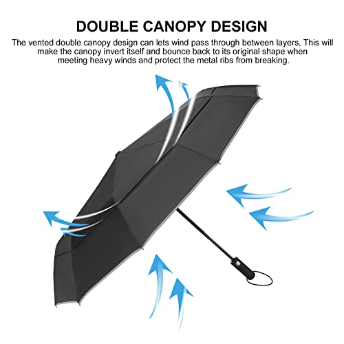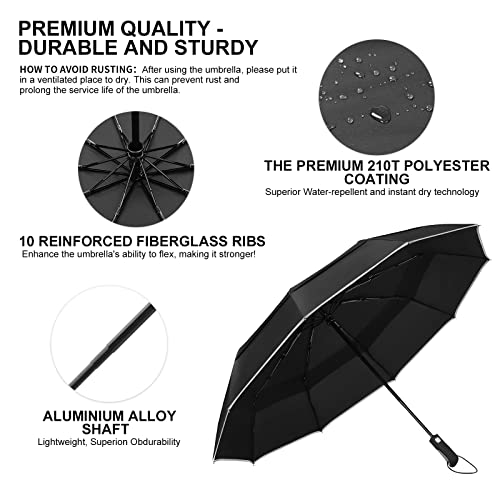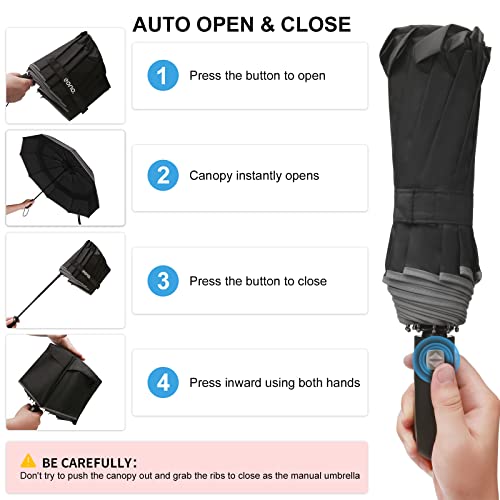Auto Open And Close: Windproof Umbrella is very easy to operate, just one second, one-handed operation, you can open or close the umbrella with the touch of a button, No more dealing with the hassle of manual rain umbrellas, easily closes to make getting into cars and buildings a breeze.