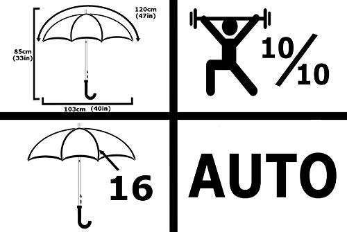 Specification: COLLAR AND CUFFS LONDON – Windproof 60mph – 16 Ribs For Super-Strength – Extra Strong – Triple Layer Reinforced Frame…