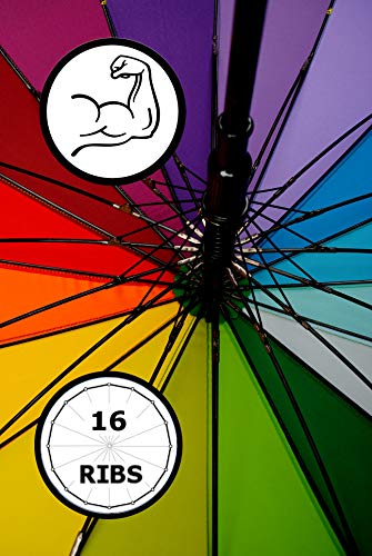 1) This umbrella has 16 ribs, twice the number of many umbrellas. Extra ribs mean extra strength!