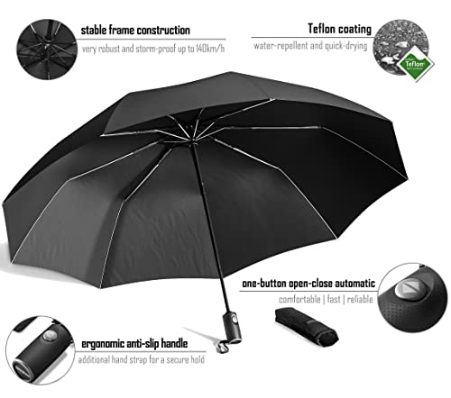 ✅ #𝟭 𝗔𝗨𝗧𝗢𝗠𝗔𝗧𝗜𝗖 𝗨𝗠𝗕𝗥𝗘𝗟𝗟𝗔 – 𝗖𝗟𝗔𝗦𝗦𝗜𝗖, 𝗖𝗢𝗠𝗣𝗔𝗖𝗧, 𝗦𝗧𝗨𝗥𝗗𝗬 – Classic design, innovative features and a compact size (30cm, weighing 432g – fits into every pocket) make this premium travel umbrella not only probably the best fully automatic pocket umbrella on the market but also a smart accessory and trusty companion for ladies and gentlemen in any weather – whether it be rain, wind or a storm.