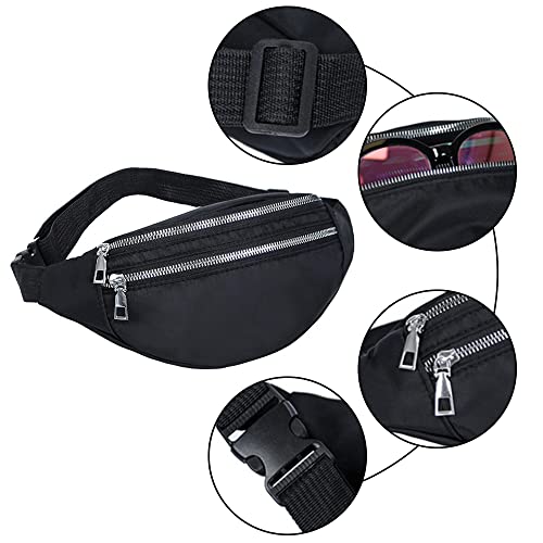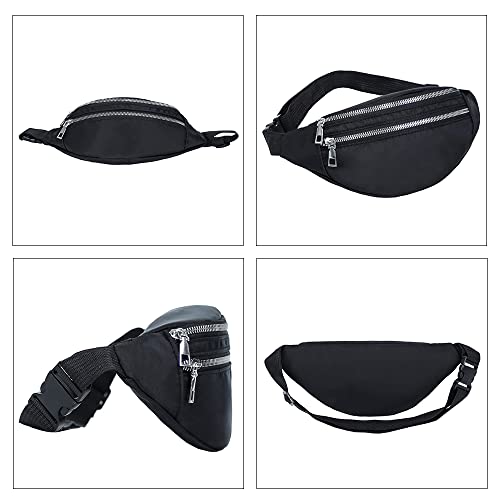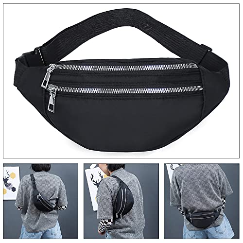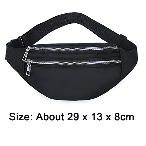 Black Sports Oxford Cloth Waist Bag Water Resistant Bum Bag Adjustable Workout Fanny Pack for Outdoor Sports Workout…