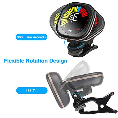💥360º Rotation Clip-on Tuner : 360 degree rotation allows this tuner rotate at any angle you want.A tuner with high contrast LCD color display screen offer you an excellent visibility.