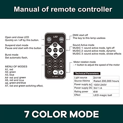 【Disco Light with Remote Control】The disco light is very easy to use, you can easily choose single color and multi-colors: Red, Green, Blue, Red/Green, Red/Blue, Green/Blue, or all the colors together. It also can control the speed of color rotating and 3 lighting modes(Music activated, auto and flash).
