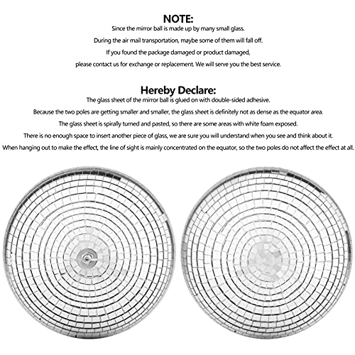 MATERIAL: Mirror Ball is made of Styrofoam inner and covered by solid glasses [ secured well and evenly placed]. Lightweight and easy to install.