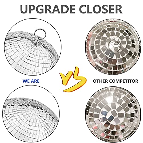 Updated 200mm Mirror Disco Ball with Hanging Ring, Silver Glitter Ball Great for Party or Dj Dance Light Effect…
