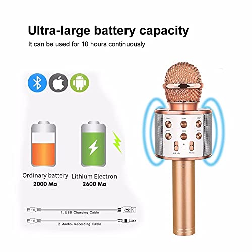 【Charge is Long Lasting】Built-in 1800mAh rechargeable battery allows you listen the music of 12 hours or sing of 4 hours in a fully charge. It is not too heavy and wireless. It can be taken anywhere for an instant karaoke party. You will enjoyed singing with this extraordinary microphone!