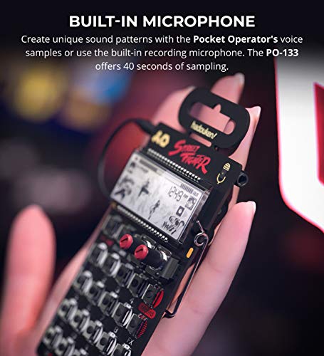 PROVIDES 40 SECONDS OF SAMPLING : The Teenage Engineering PO-133 is a micro sampler equipped with 40-second sample memory. Create unique patterns using the Street Fighter game-based samples or with the powerful, built-in recording microphone