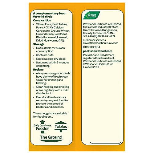Contains calvita vitamin mix, a distinct blend of vitamins and nutrients that garden birds need to stay healthy