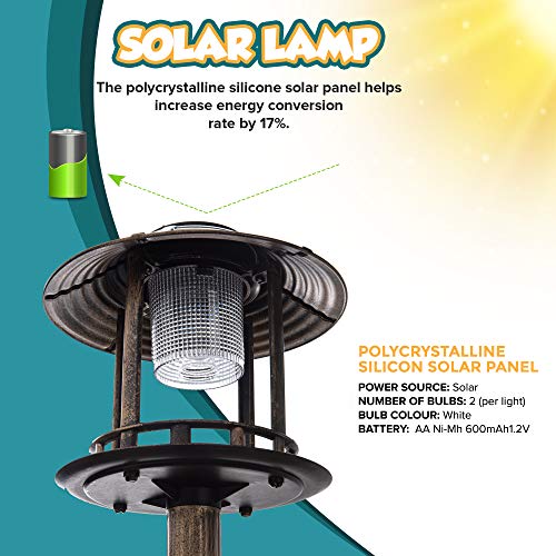 BUILT-IN LIGHTING – With a discreet 40V solar panel which will charge from the sunlight, storing power in a Ni-Mh 1.2V battery, the LED lighting will come on when the light senses sunlight waning