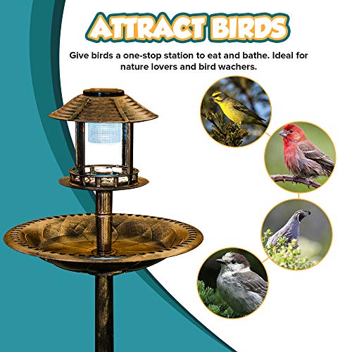 Specification: Petlicity Bird Bath and Feeder Station in Ornamental Brass Effect with Planter and Solar Powered Light for Outdoor…