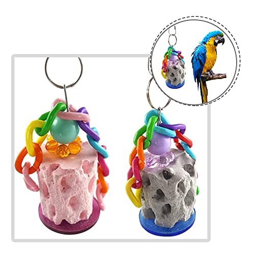 2 Pcs Parrot Chew Toy Natural Materials Bird Beak Calcium Stone Hanging Chew Toy for Parrot Macaw African Grey Parrot Cockatiel (Random Color)