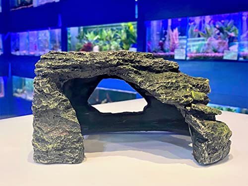 Mezzaluna Gifts Grey Natural Effect Cave Fish Tank Swim-through Hideaway Aquarium Ornament