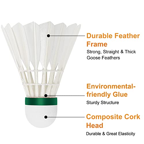 MANJHONG Badminton Shuttlecocks Suitable for recreational play only Durable Goose Feather Shuttles, Composite cork ball head, Made of straight and thick goose feather, 77/78 Speed Available