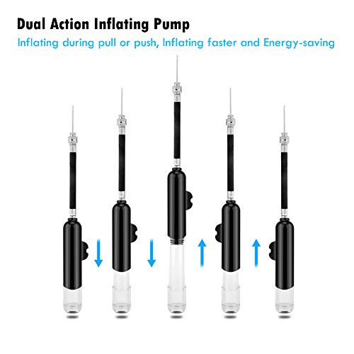 ✅Various Accessories – Made of ABS material. It is durable and extremely simple to operate, include 1*dual action ball pump, 2*Plastic tapered nozzles, 1*Flexible hose, 3*Inflating metal needles, 2*Presta Valve